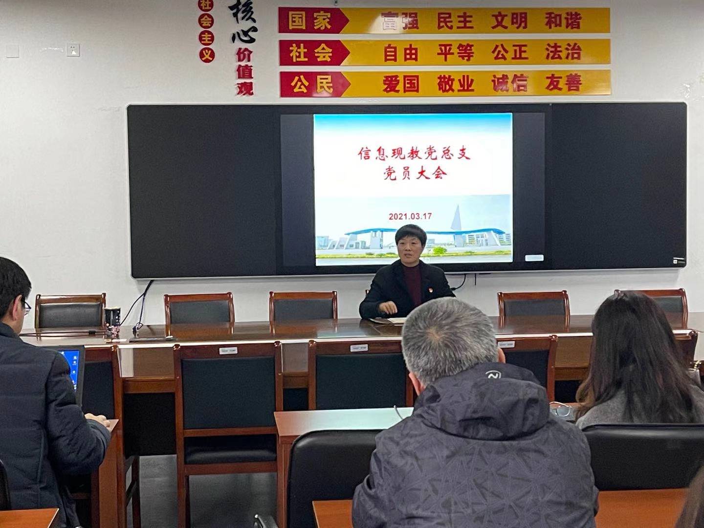 为全面宣传贯彻、执行党的路线、方针、政策,全面执行上级党组织的决议,抓好“三会一课”,夯实党建基础,提升支部组织力,充分发挥广大党员教师的先锋模范作用,激励和动员广大党员教师努力完成所担负的各项教育教学任务,3月17日下午,信息工程学院与现代教育技术中心党总支召开了全体党员大会,党总支书记刘永玲主持本次会议。