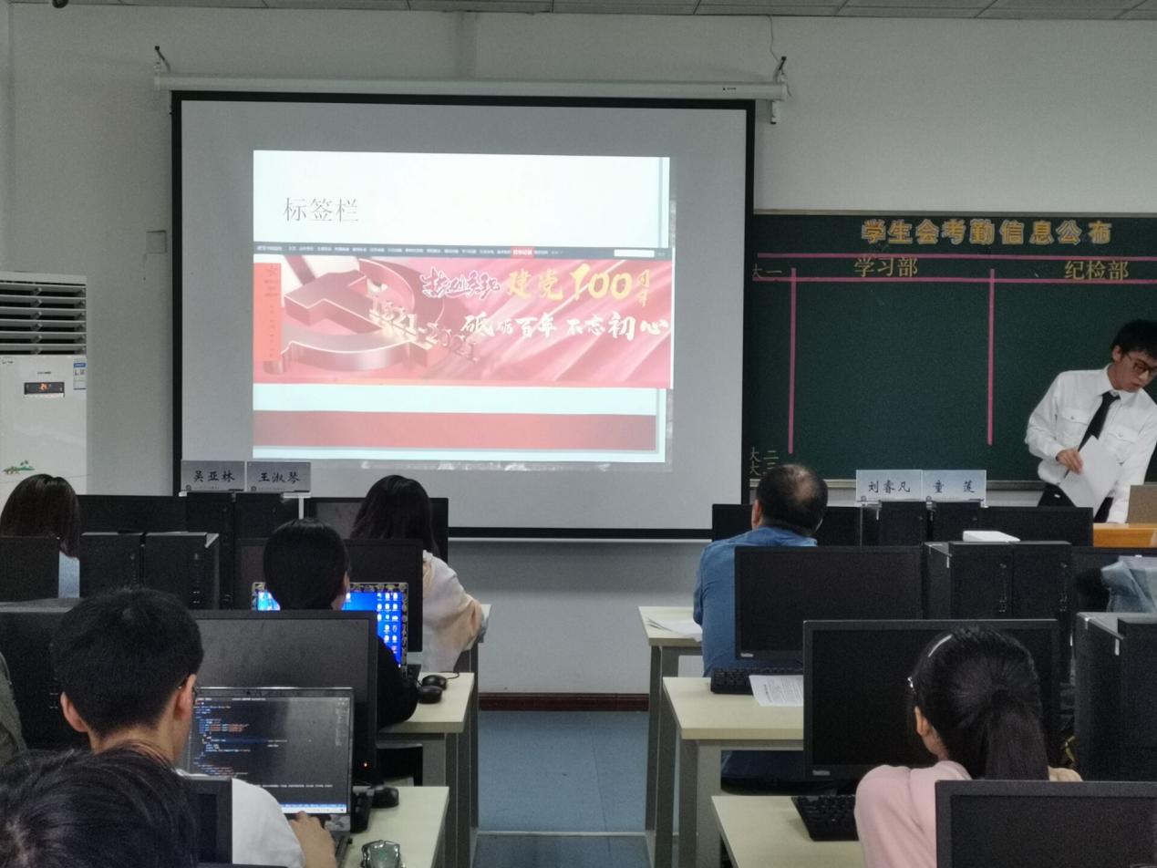 信息工程学院承办的2021年江苏海院第五届学生技能大赛“北大课工场杯”网页设计(web应用开发)赛项4月拉开帷幕以来,同学们踊跃报名,积极努力。本次比赛得到了学院、二级学院领导以及北大课工场的大力支持。经过二十多天的初赛,赛项决赛于5月26日下午,在信息楼E301举行。参加决赛的各支队伍展示了自己的作品,并逐个介绍了作品的意义、目的及创意。参赛队伍个个身手不凡,展示的作品可圈可点,各具特色、内容丰富,主题包含中国共产党建党百年、海院70周年校庆、中国风等,充分体现了当代大学生的风貌。评委老师认真细致的审阅了每个参赛作品。