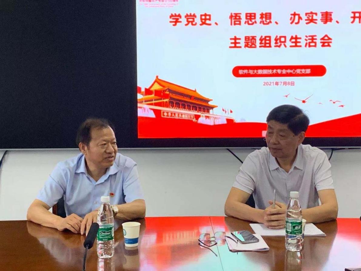 7月8日上午,软件与大数据技术专业中心党支部在会议室召开了党史学习教育专题组织生活,会议由支部书记游学军主持,全体党员参加了会议,校党史学习教育督导组蒋龙余老师和党史办刘开凯老师出席会议。