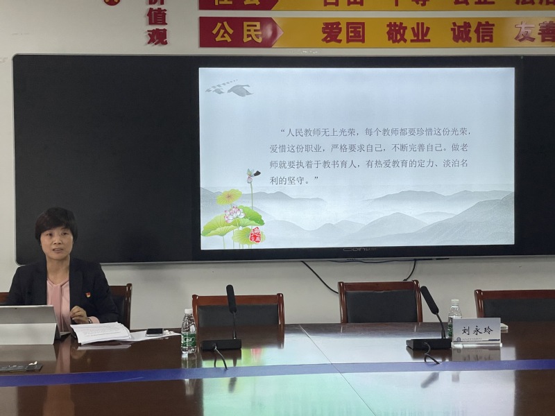 会上,刘永玲书记传达了学校《师德专题教育实施方案》,领学了习近平总书记关于教育的重要论述,并通过一个个具体的案例为老师们解读师德师风建设要点。她要求,全体教职员工要提高政治站位,坚守为党育人、为国育才的初心,坚定理想信念、厚植爱国情怀、涵养高尚师德,全面提升政治素养、师德涵养和专业能力;要以《新时代高校教师职业行为十项准则》为标准,认真学习《习近平总书记关于师德师风的重要论述摘编》,深刻反思,积极开展自查自纠,对照检查问题,从每个人做起,争做师德师风建设的模范和榜样。