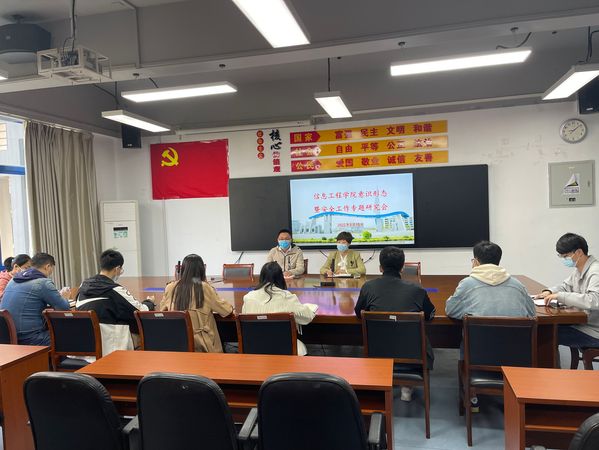 3月15日,信息工程学院在E110会议室召开意识形态暨学生安全工作专题研究会,学院党总支书记刘永玲、副书记卢淳及全体辅导员参加会议。