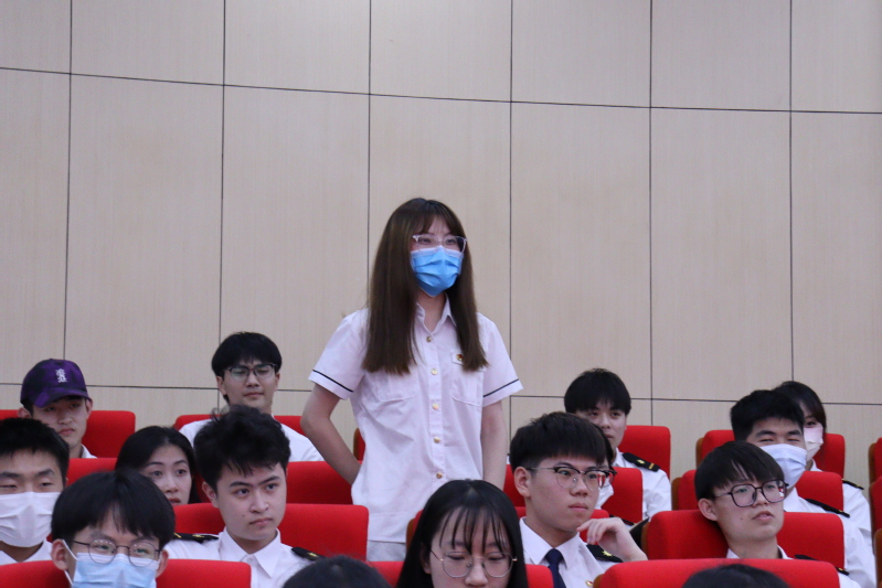 卢淳老师问了同学们一个问题:“你眼中的中国是什么样的?”同学们踊跃发言:“富强”“高速发展”“和平”“奋进”……一个个词语由同学们自豪地说出。随后卢淳老师从三个方面为学员们具体解读了共产党人大无畏的牺牲精神。