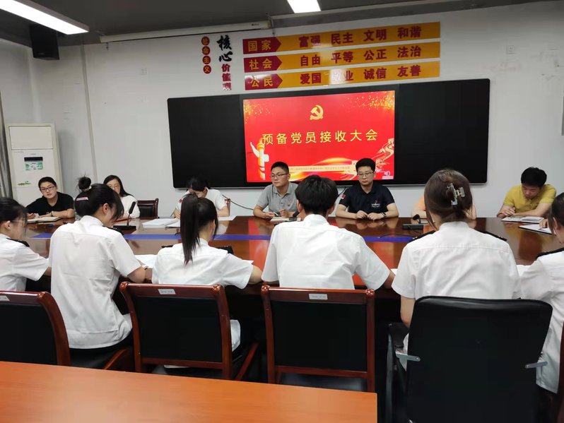 首先,杨雅楠等8名学生发展对象依次自我介绍并宣读《入党志愿书》,列出自己的优点和取得成绩的同时,展开深入的自我批评。随后培养联系人对发展对象个人情况一一进行介绍,表明态度。支部副书记沈诗琪向大会报告申请入党人的审议情况后,与会党员老师也纷纷进行评议,着重指出每一位同志的优缺点。通过正式党员投票表决的方式,所有发展对象均获得全票通过,被吸纳为中共预备党员。支部副书记沈诗琪带领所有预备党员宣誓。各位预备党员同学也表明了自己的决心,将在后续的学习工作中不断加强学习,做好模范带头作用。