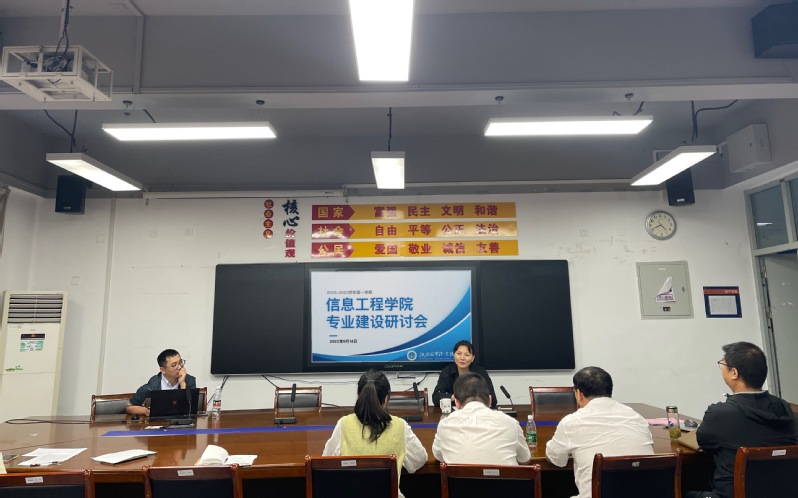 为推动我院各专业建设,全面提高人才培养质量,9月14日下午,信息工程学院在E110会议室召开各专业建设研讨会,各专业中心主任、课程群负责人参加了本次会议,院长张娟主持会议。