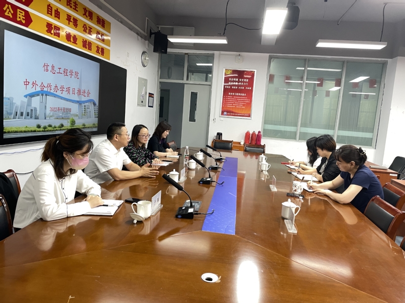 会上,双方围绕推进我院电子信息工程专业中外合作办学项目相关工作内容展开讨论。为了更好的继续推进该项目,最终确定由国教院谈颖老师联系美国高校,针对中外电子班的专业课程开展外教线上授课,并组织学生考取国际证书ETA。组织中外班学生继续开展境外游学项目,开拓视野,全面弘扬中华民族传统文化的同时,增加学生对国际文化的了解,强化英语的运用能力,积极挖掘更有潜力的中外合作项目。