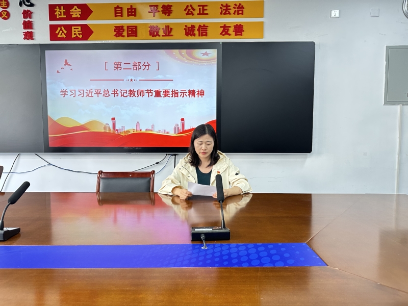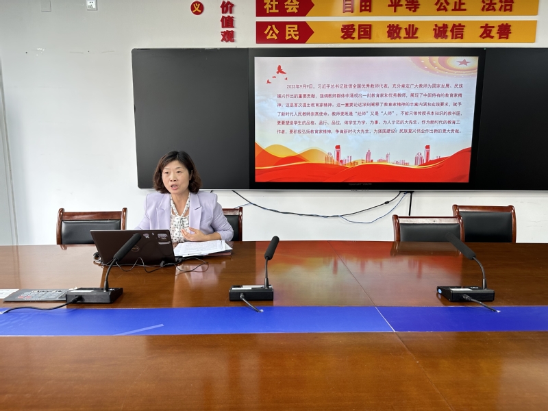接着,学院优秀教师代表陈婷婷领读了第39个教师节来临之际《习近平致全国优秀教师代表的信》。习近平在信中首次提出并深刻阐释了中国特有的教育家精神的时代内涵,即心有大我、至诚报国的理想信念,言为士则、行为世范的道德情操,启智润心、因材施教的育人智慧,勤学笃行、求是创新的躬耕态度,乐教爱生、甘于奉献的仁爱之心,胸怀天下、以文化人的弘道追求。刘永玲就“大力弘扬教育家精神,争做新时代大先生”做了重点宣讲,并提出了四点建议:一是坚持政治引领,二是工作敬业奉献,三是潜心钻研业务,四是做好师德表率。全体教师要深入学习领会,持续践行落实,将习近平总书记教师节重要指示精神融入教育教学有关课程、课件、文章等,切实提高为党育人、为国育才的责任感和使命感。