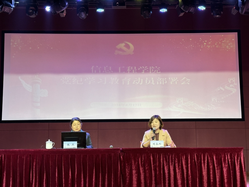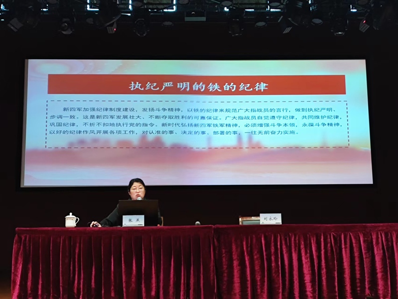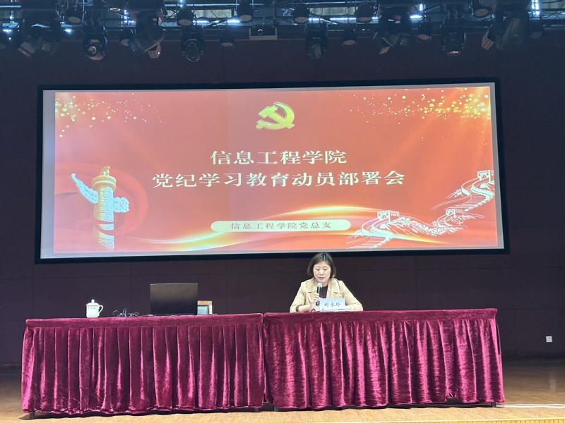 4月17日下午,信息工程学院党总支在大学生活动中心召开党纪学习教育动员部署会暨第一次专题党课。会议邀请到新四军江南指挥部纪念馆馆长兼党支部书记张燕同志做《三大法宝——浅析新四军铁的纪律的时代意义》专题党课。全体党员教师参会,总支书记刘永玲主持会议。
