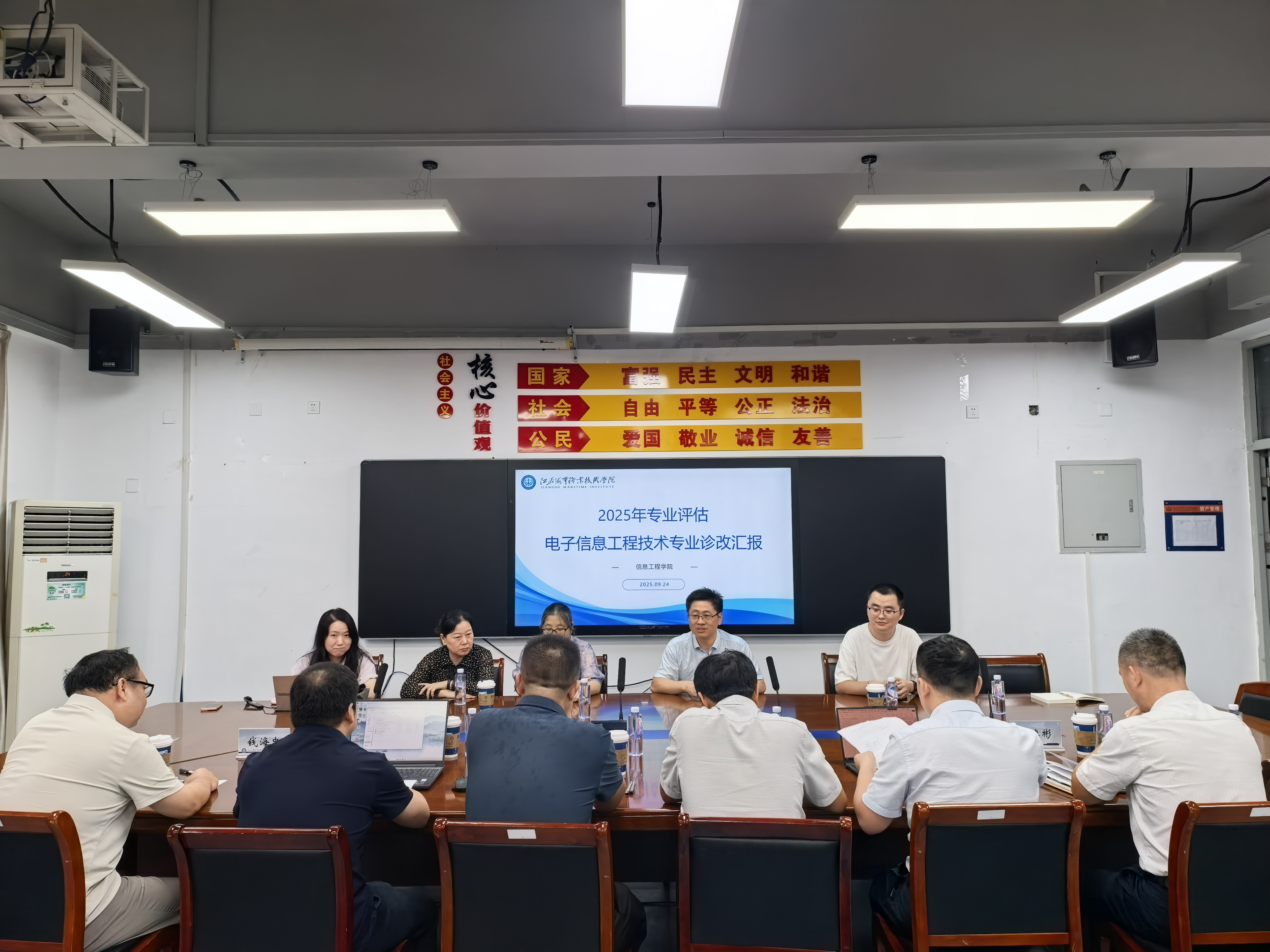 为进一步深化电子信息工程技术专业内涵建设,精准评估专业人才培养质量,根据学校整体工作安排,9月24日下午,2025年电子信息工程技术专业评估诊改汇报会顺利召开。评估指导组一行、信息工程学院副院长游学军、电子信息工程技术专业中心主任王莹及专业骨干教师共同参会,会议围绕专业建设成效、现存问题及诊改方向展开全面交流。