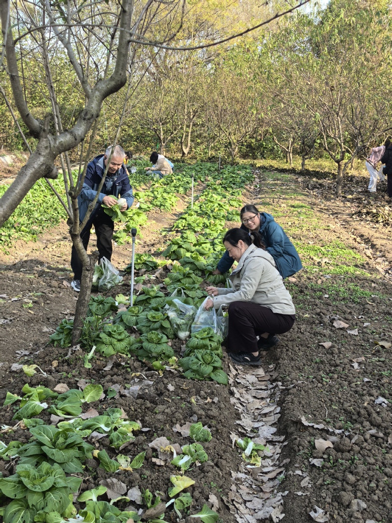 当日下午13时,参与活动的教职工们准时抵达瑞硕农场。一下车,清新的田园气息便扑面而来,连片的菜畦里绿意盎然,饱满的红薯藤蔓匍匐在地,让大家瞬间卸下了工作的疲惫,脸上洋溢起期待的笑容。
