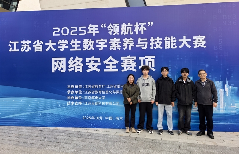 近日,由江苏省教育厅、江苏省委⽹信办联合主办的2025年“领航杯”江苏省大学生数字素养与技能大赛决赛在南京师范大学仙林校区圆满落幕。大赛围绕人工智能、网络安全等数字时代核心能力展开,旨在全面提升师生数字素养与创新实践水平。信息工程学院师生积极参与、表现出色,在多个赛项中共斩获特等奖1项、一等奖2项、二等奖1项。