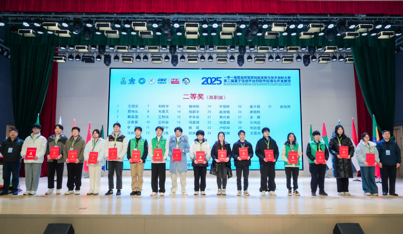 12月27日,2025一带一路暨金砖国家技能发展与技术创新大赛——第二届基于信创平台的软件应用与开发赛项(中高职组)决赛在苏州工业园区工业技术学校圆满落幕。我校信息工程学院2024级物联网应用技术专业余爽、罗然泽两名学子代表学校参赛,与全国104所院校的223名中外选手同台竞技,最终凭借扎实的专业技能和出色的临场表现,余爽同学荣获高职组二等奖(指导教师:张焱),罗然泽同学获优秀奖(指导教师:丁宁),我校同时被授予“优秀组织奖”。