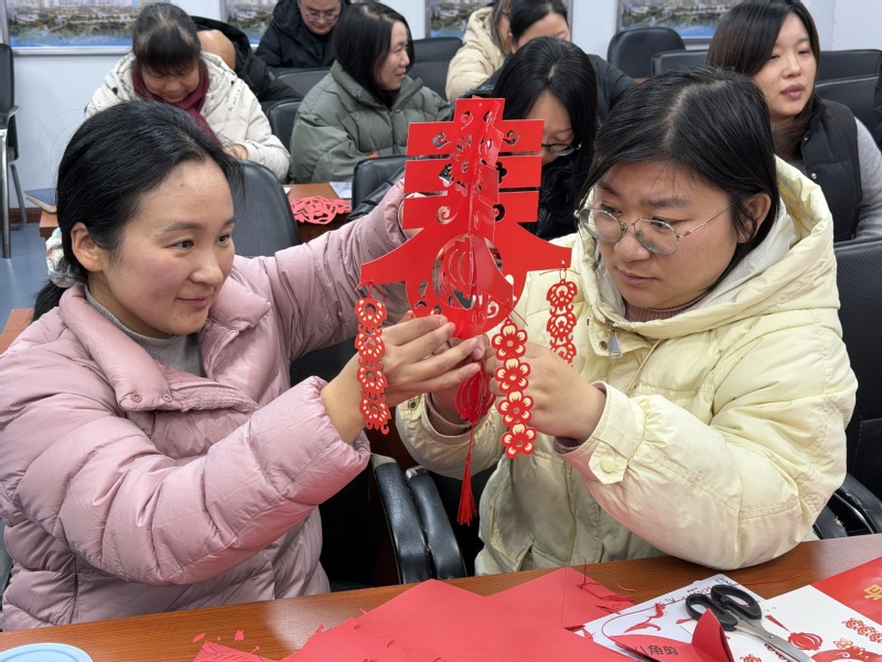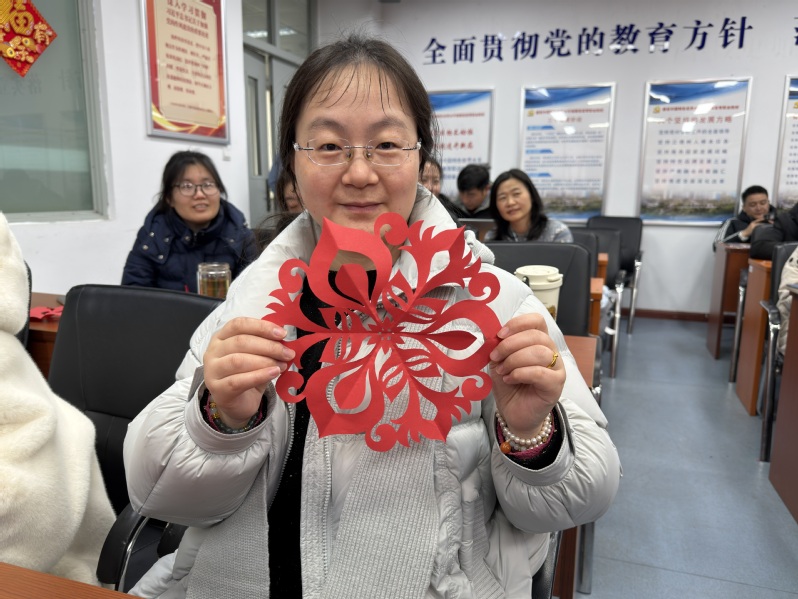 红纸翻飞间,不仅展现了老师们的匠心巧思,更传递了中华优秀传统文化的魅力。大家手持自己的作品合影留念,一张张笑脸与喜庆的窗花相映成趣,定格下这份温馨的年味。