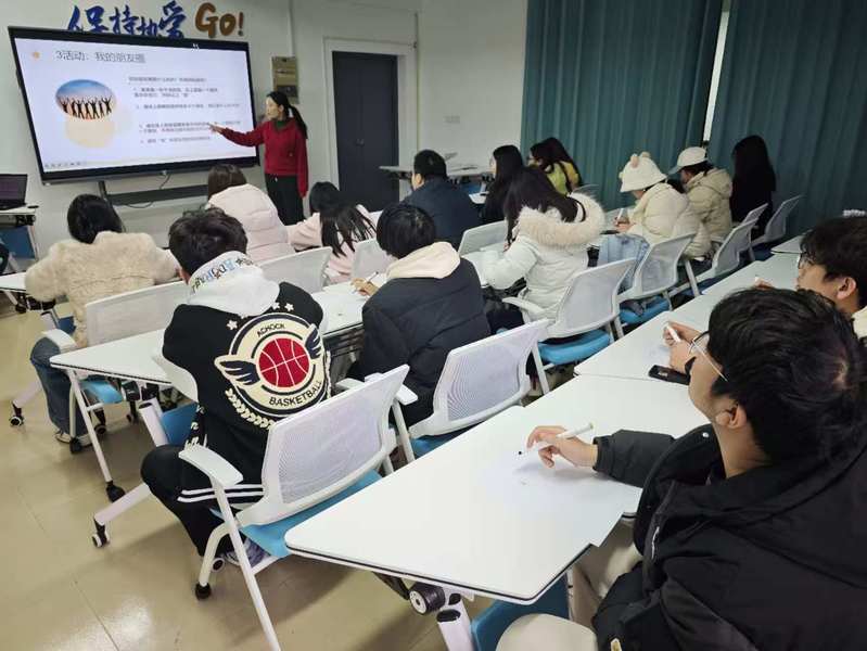 活动伊始,周老师强调朋辈力量的重要性,希望参与人员主动学习互助技巧,做好倾听者与引导者,为同学筑牢心理屏障。交流分享环节,各班级心理委员代表结合经历,分享班级情绪管理、压力缓解等经验,提出心理委员应做好“同行者”,以共情陪伴伙伴成长。互动环节中,同学们围绕朋辈帮扶相关话题深入探讨,辅导员现场进行引导,讲解调适技巧与帮扶注意事项。