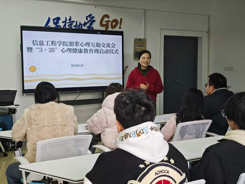 为推进“一站式”学生社区育人建设,筑牢学生心理健康防线,帮助学生缓解心理压力、悦纳自我、提升心理韧性,以积极心态面对学习生活,3月11日,信息工程学院在“一站式”学生社区——信韵书院开展朋辈心理互助交流会,学院心理专干辅导员老师周书利、班级心理委员、全体心协骨干参加活动。