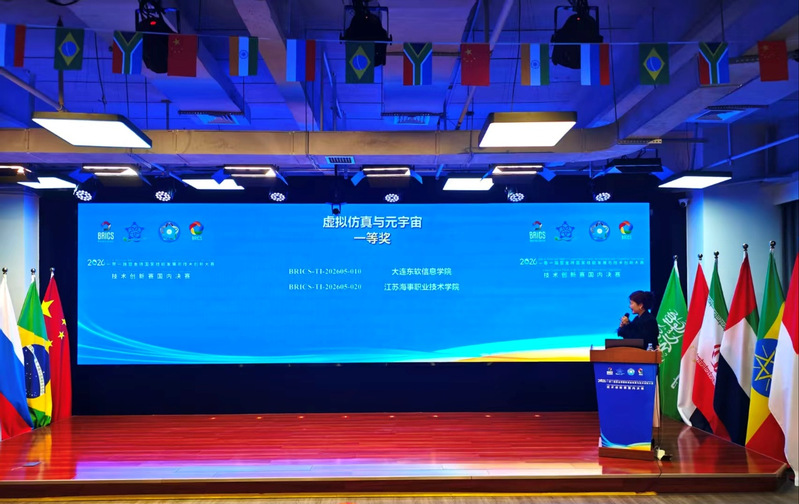 4月3日,2026一带一路暨金砖国家技能发展与技术创新大赛之技术创新赛国内决赛在厦门金砖未来创新园圆满落幕。本次大赛由金砖国家工商理事会中方理事会、一带一路暨金砖国家技能发展国际联盟等单位联合主办,是在金砖+合作框架下服务国家信创战略与数字经济发展的高水平国际技能赛事。我校信息工程学院陈海恩、孙露、刘兆洪、祝悦文、况妍萱五名学子参赛,最终凭借扎实的专业技能和出色的临场表现,荣获虚拟仿真与元宇宙赛道全国一等奖(指导老师:胡鑫)